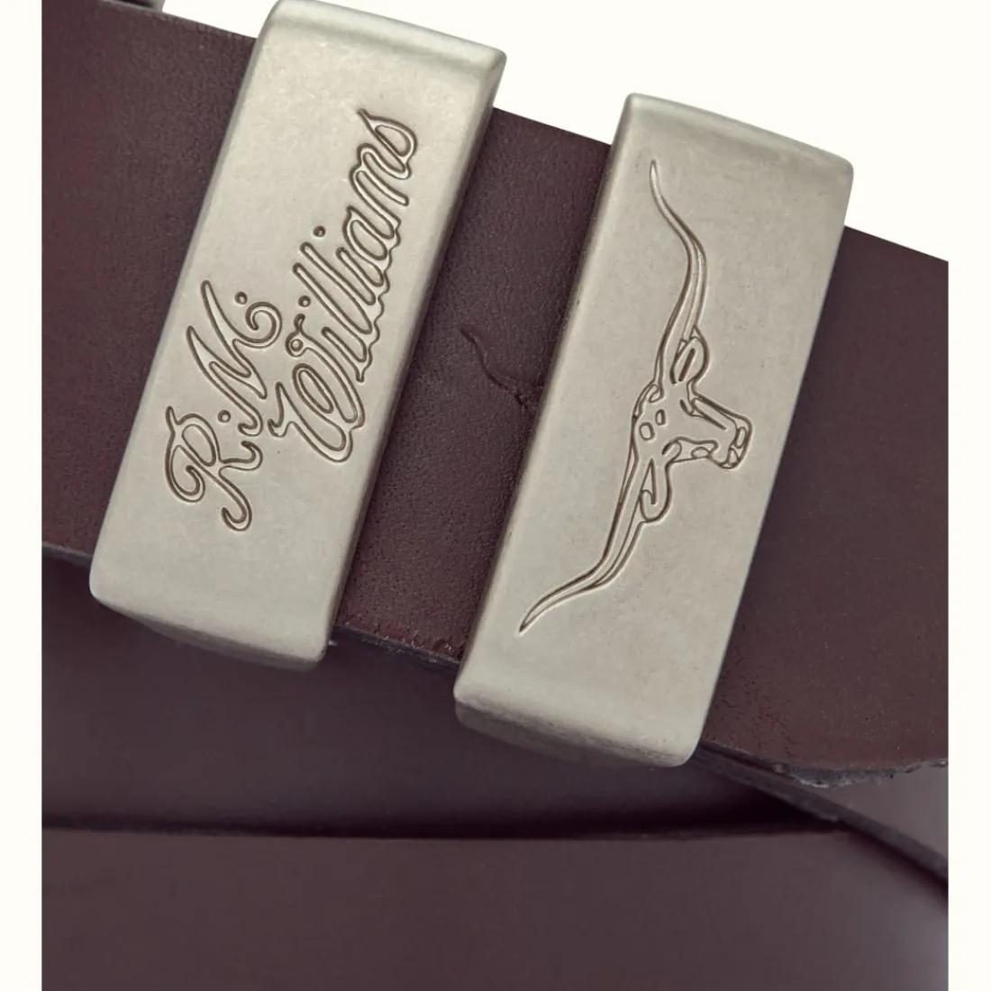 Made In Australia, The 3 Piece Solid Hide Belt Is An R.M.Williams Classic, Crafted In Premium Solid Hide Leather, It Features A 1 1/2″ Wide Strap, Brushed Nickel 3 Piece Buckle Set, And Double Keepers With Longhorn Debossing.