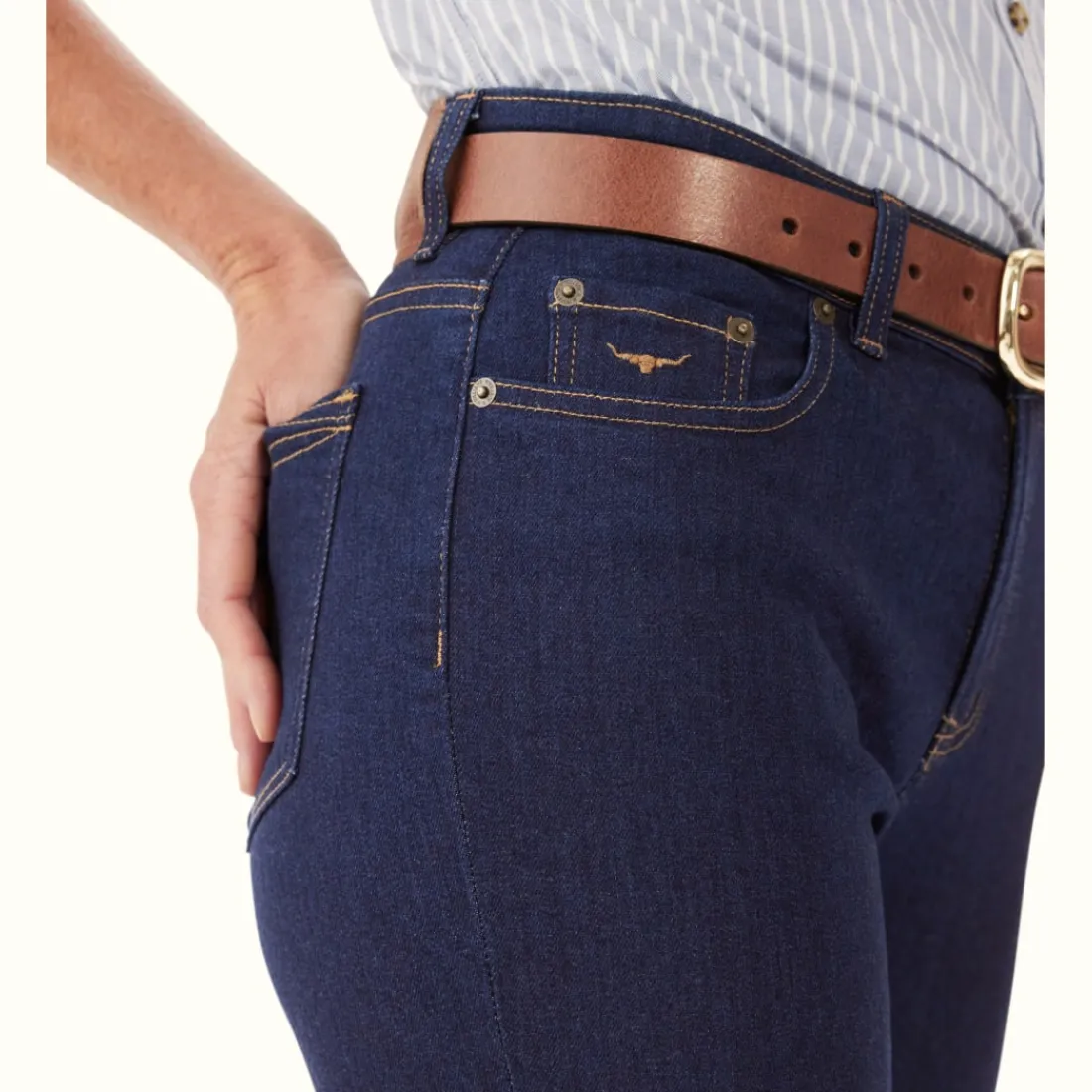 - Feature Stitch On Back Hip Pocket, Longhorn Embroidery On Coin Pocket